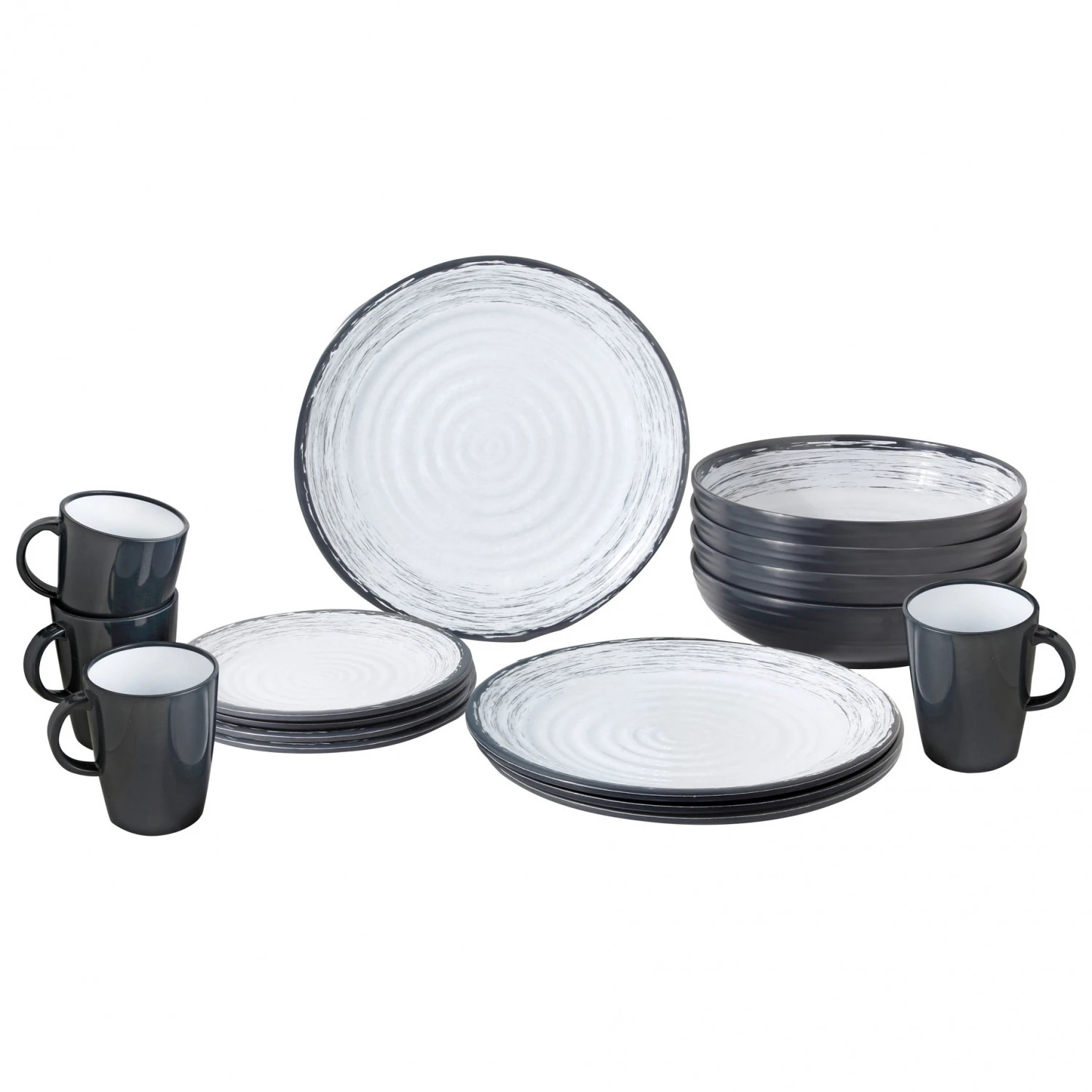 Das 16-teilige Set besteht aus je vier Teller, kleinen Tellern, Schüsseln und Tassen. Das Material ist hitzebeständig und für Heißgetränke problemlos geeignet. Zudem ist es pflegeleicht, hygienisch und bruchfest. Mit dem zeitlosen Design ist das Set elegant und schick. Ob Frühstück, Mittagessen oder Brotzeit, damit ist der Camper auf der sicheren Seite!