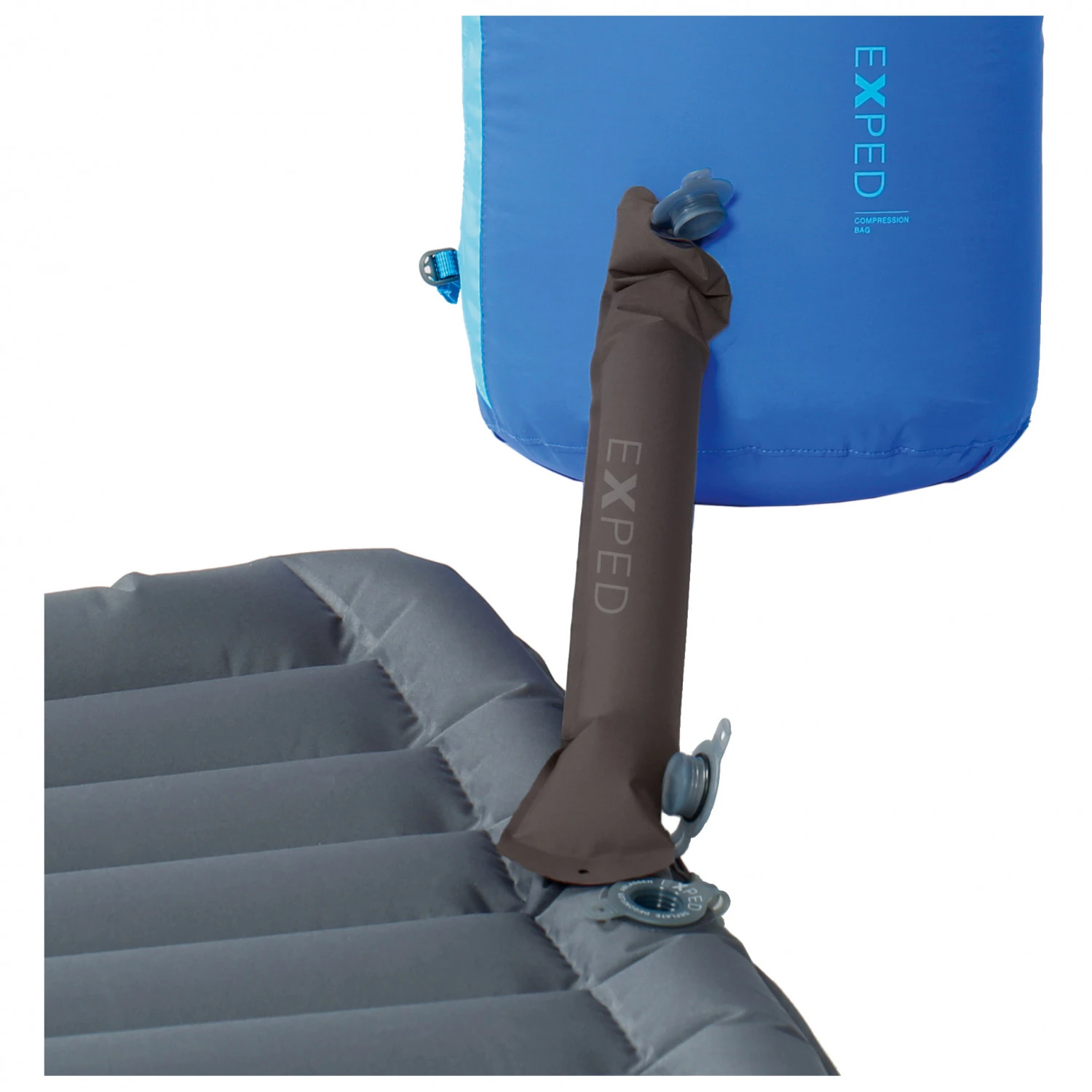 Mit dem Schnozzel lassen sich passende Drybags von Exped zu einer praktischen Luftpumpe für Isomatten und Luftmatratzen umfunktionieren. Der Luftpumpsack ist aus robustem Kunstfasergewebe mit einer wasserabweisenden PU-Beschichtung hergestellt. Der Exped Schnozzel ist mit allen Exped Drybags mit Ventil kompatibel.