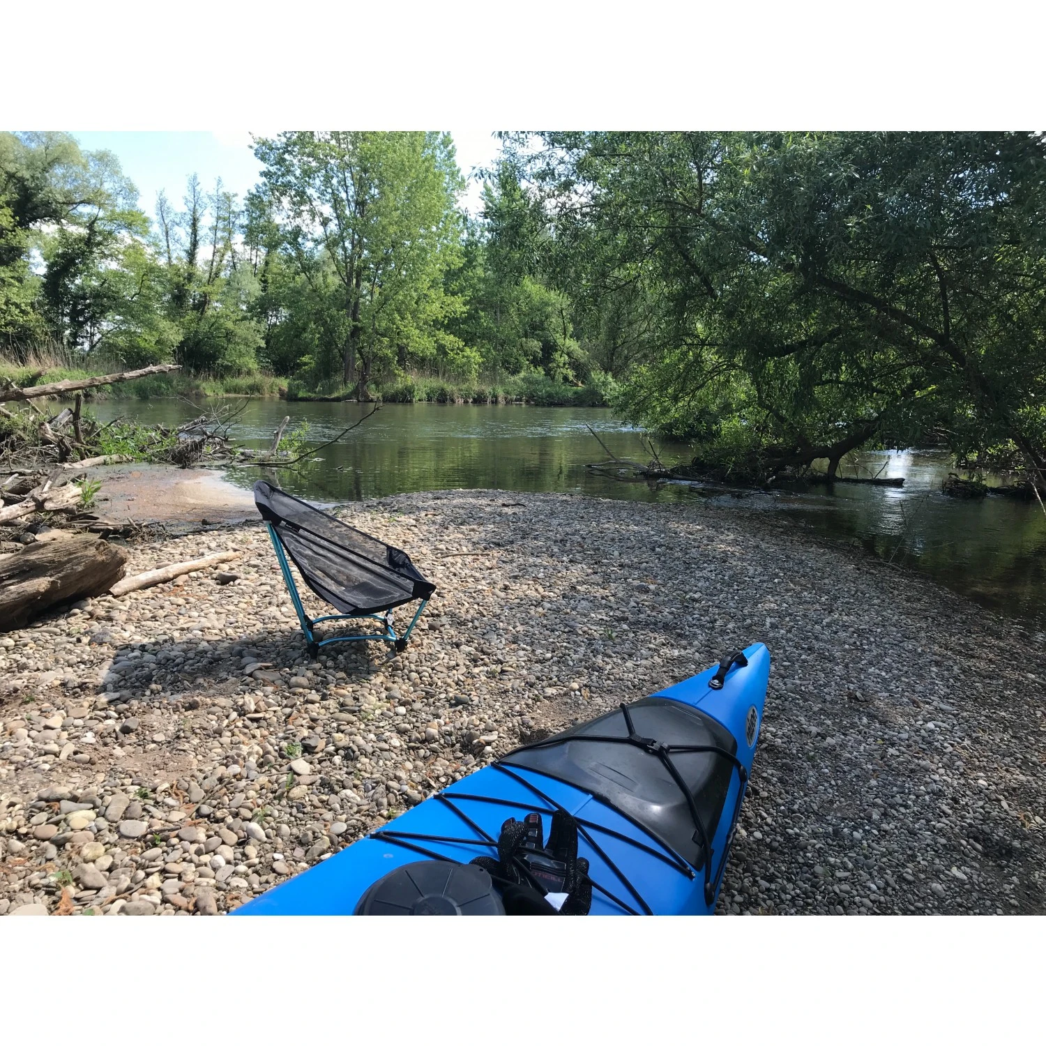 Helinox macht mit dem Ground Chair deutlich, dass ein komfortabler Klappstuhl nicht viel wiegen muss! Dieser ultraleichte Stuhl bringt gerade mal so viel wie eine Packung Mehl auf die Waage. Zusammen mit einem minimalen Packmaß ergibt das eine geradezu unschlagbare Kombination! Wer auf langen Campingreisen extrem auf das Gepäckgröße und -Gewicht achten muss, aber auf ein gewisses Maß an Komfort nicht verzichten will, wird mit dem Helinox Ground Chair einen treuen Begleiter finden. Sein Gestänge aus TH72M Aluminium kommt von DAC, dem Experten im Bereich von lange haltbaren Zeltstangen. In Kombination mit seiner Sitzfläche aus robustem und leicht zu reinigendem Polyester mach der Helinox Ground Chair in geradezu jedem Gelände eine gute Figur. Egal ob beim Eisfischen, während der Wüstentour in der Sahara oder beim Trekking in Lappland!