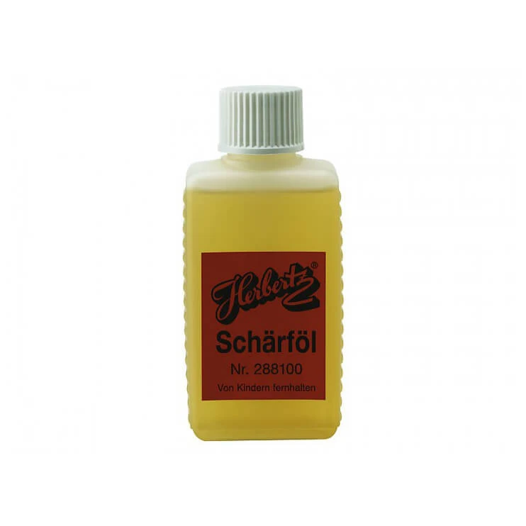 Unerlässlich für alle, die ihre Messer regelmäßig selber schärfen – das Schärföl von Herbertz! Das Öl wird grundsätzlich bei der Benutzung von Abziehsteinen verwendet. So gleitet die Klinge besser über den Schleifstein. Allerdings sollte man darauf achten, nach dem Schärfen die Ölrückstände von der Klinge zu entfernen!