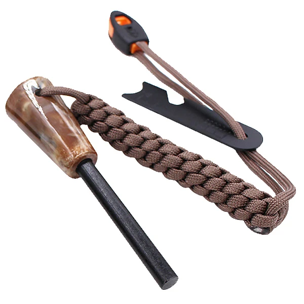 Der Zündstahl Stone von Origin Outdoors verfügt über einen angenehm in der Hand liegenden Griff in edler Steinoptik und bietet auch bei Nässe und mit Handschuhen sicheren Halt beim Feuermachen. Am Band ist eine Notfallpfeife angebracht. Zudem verfügt der Zündstahl über einen Flaschenöffner, ein Kartenmesser, ein Lineal und einen 8er Schlüssel. Ideal zum Campen!