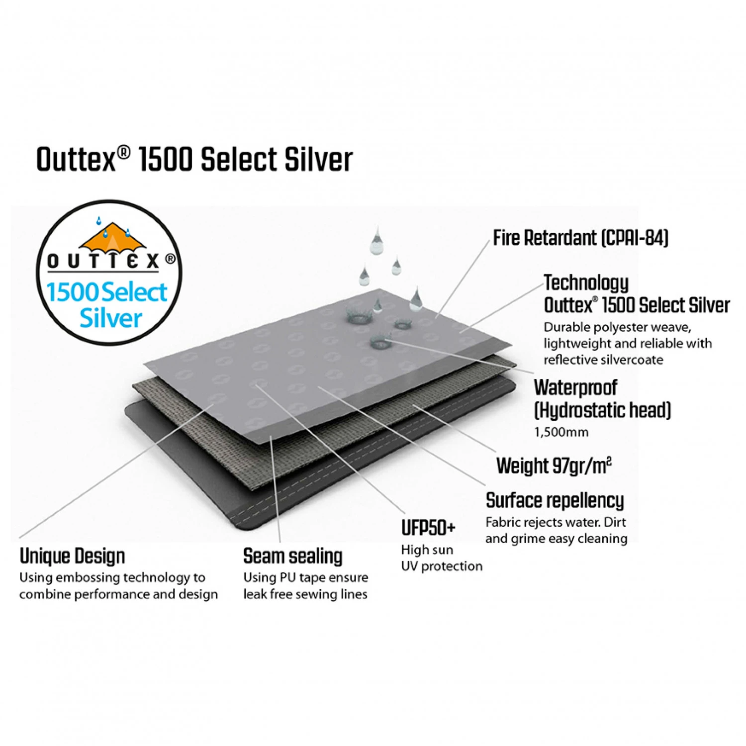 Das Event Lounge XL Side Wall with Zipper 2-Pack verleiht dem Event Lounge XL Gruppenzelt von Outwell ein Plus an Wetterschutz und Privatsphäre! Das zweiteilige Seitenwandset ist aus dem wasserdichten und hitzereflektierenden Outtex 1500 Select Silver Zeltmaterial von Outwell gefertigt und kann beliebig angebracht werden, um zwei der vier Seiten abzudecken. Für einen optimalen Zugang sind die Wände mit einem mittigen Reißverschluss versehen.