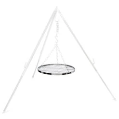Mit dem Hänge-Rost für Dreibein von Petromax hast Du eine Grillstelle für jedes Gelände. Der Stahlrost wird von drei stabilen Ketten on Position gehalten und an den Dreibeinhaken angehängt. Durch die Pendelbewegung wird verhindert, dass das Grillgut austrocknet oder verbrennt.