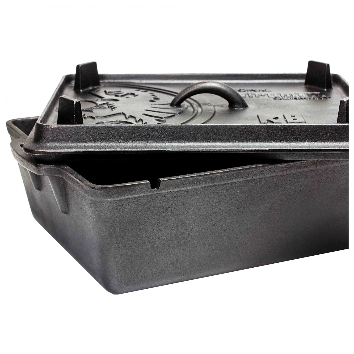 Mit seinen 9 kg Gewicht ist der Kastenform K8 Topf von Petromax zwar nicht für den ultraleichten Einsatz konzipiert, dafür aber ideal zum Brot- und Kuchenbacken beim Camping und im Basecamp. Der massive Topf in Kastenform mit Deckel kann auch perfekt als Bräter oder Auflaufform verwendet werden. Mit dem Rillenprofil im Deckel ist auch ein Einsatz als Steak- oder Grillpfanne sehr gut möglich.