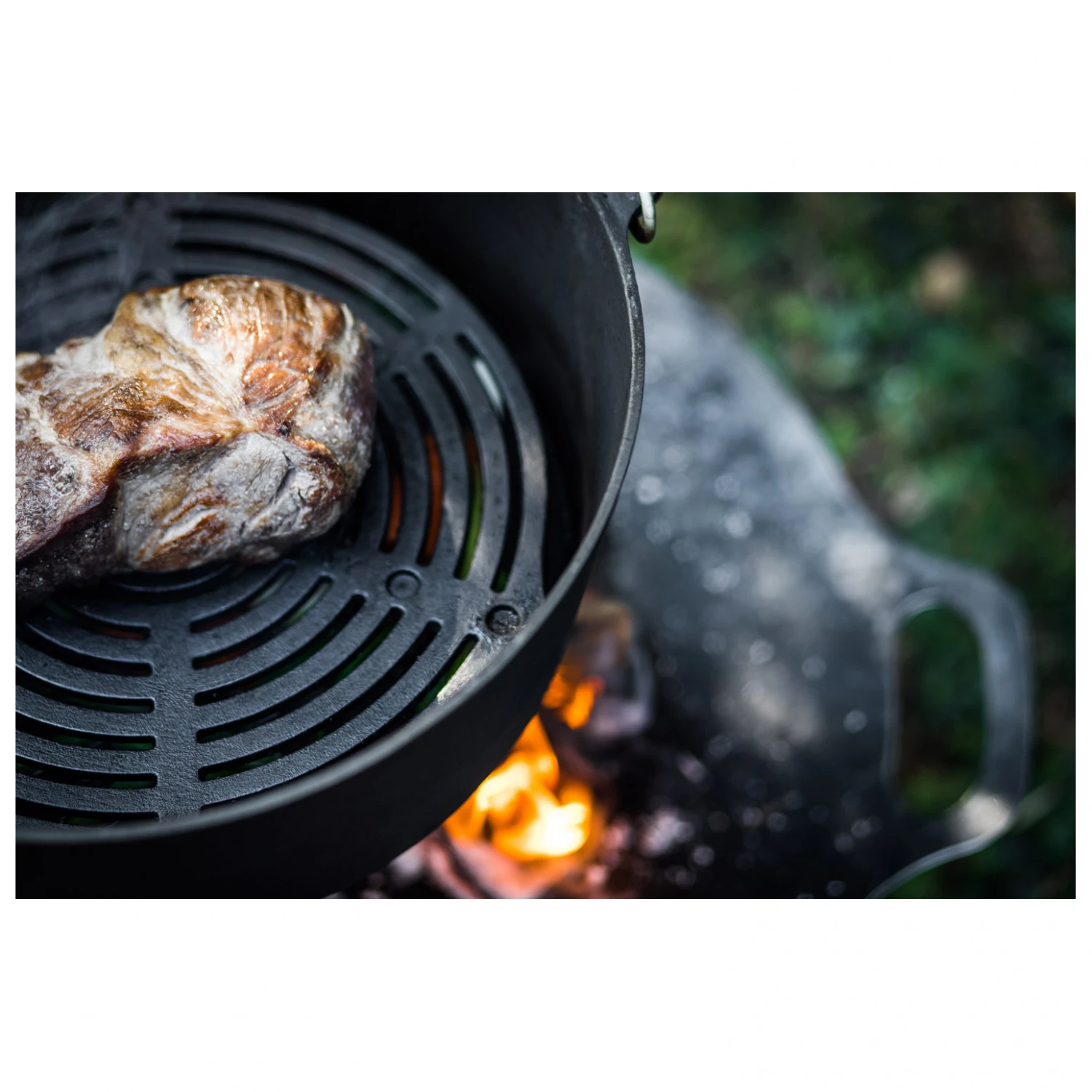 Der Stapelrost aus Gusseisen von Petromax eignet sich sowohl zum Backen und Dünsten im Feuertopf als auch zum Dampfgaren auf mehreren Ebenen. Die Füße sorgen für genug Abstand zum Feuer.