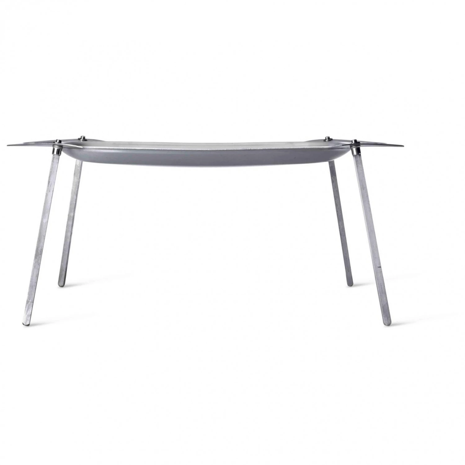 Die Primus Openfire Pan Small ist eine Pfanne in dreilagiger Sandwich-Konstruktion für das Kochen über offenem Feuer. Die stabile Grillplatte besteht aus einem Boden aus Edelstahl, einer Zwischenschicht aus Aluminium und wiederum einer Edelstahl-Oberfläche. Daraus ergibt sich eine Pfanne, in der die wärmeleitenden Eigenschaften von Alu mit den hygienischen und robusten Merkmalen von Stahl produktiv kombiniert werden. Die Pfanne ist deutlich leichter und besser isolierend als eine reine Stahlpfanne, aber kratzfest und korrosionsbeständig wie man es von Alu nicht kennt. Die Beine sind in Gewinde eingeschraubt, die verschleißfest sind und gegen Fett und Ruß geschützt sind. Außerdem steht die Pfanne durch die schräge Anordnung der Beine stabiler und diese lassen sich durch einen eckigen Querschnitt leichter einschrauben. Es lässt sich Grillen, Erwärmen und Braten in der Pfanne, die seitlich gewölbte Kanten hat, so dass das Bratgut nicht zu schnell herausfallen kann und das Wenden von Gemüse und Pfannkuchen leichter fällt. Zwei seitliche Griffe machen die Pfanne leicht zu handhaben. Den Genuss von Kochen über offenem Feuer genießen mit der hochwertigen Grillpfanne Openfire Pan Small von Primus!