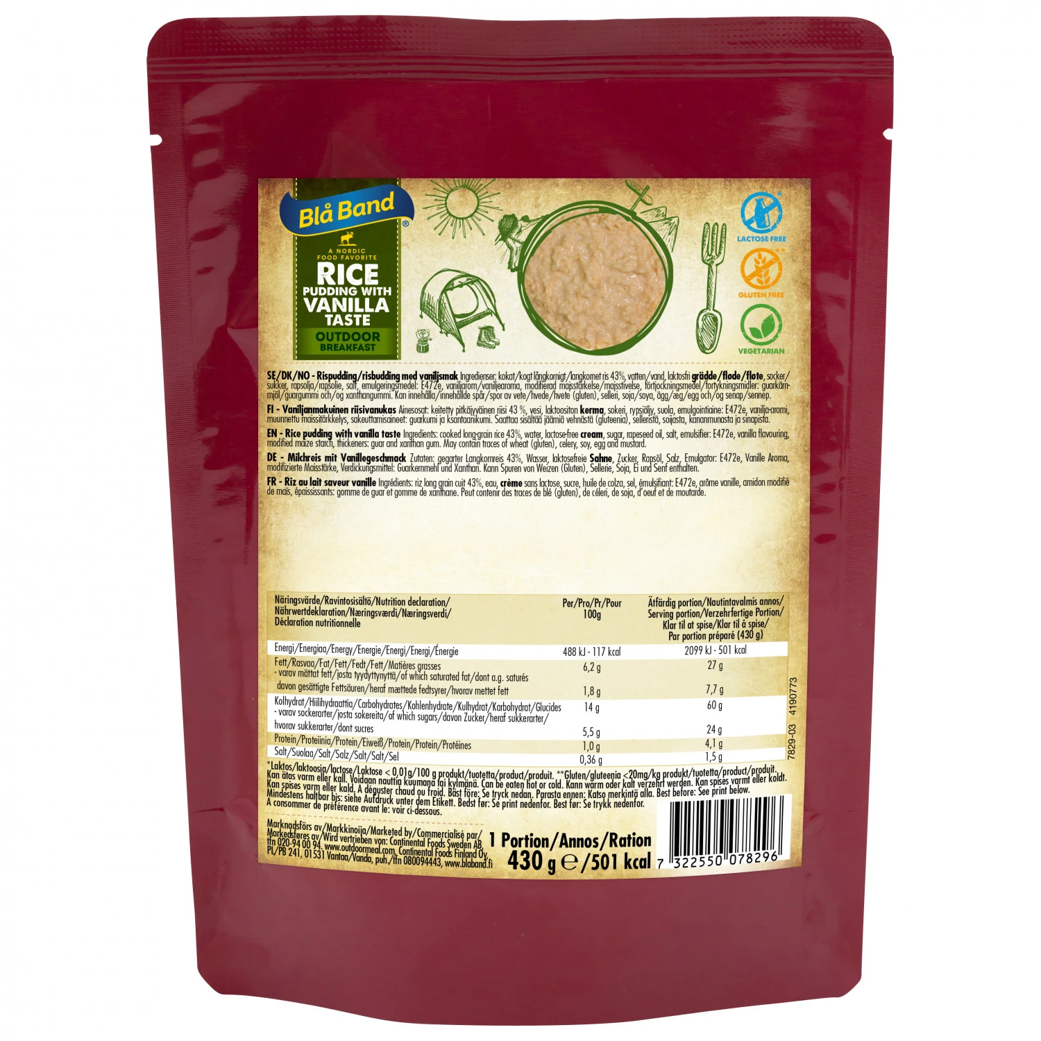 Egal ob man Berggipfel erklimmen möchte, einen Campingausflug plant oder auf Trekkingtour unterwegs ist, mit dem Rice Pudding with Vanilla Taste von Bla Band ist man für das Frühstück, eine Zwischenmahlzeit oder das Abendessen bestens versorgt. Guten Appetit!