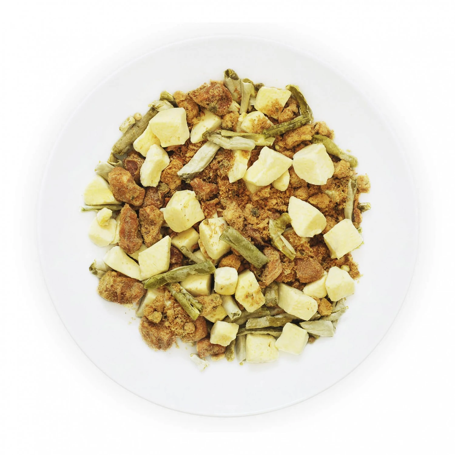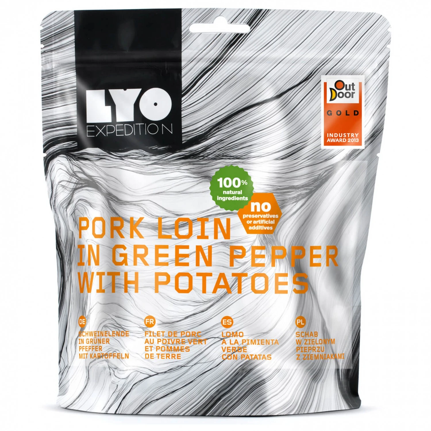 Schmeckt fast wie bei Mutti – die Lyo Food Schweinelende in grüner Pfeffersauce! Dabei kommt das Gericht völlig ohne Konservierungs- oder Zusatzstoffe aus und ist so besonders gut verträglich. Die Mahlzeit wird frisch gekocht und direkt im Anschluss gefriergetrocknet – so bleibt der Geschmack erhalten! Die Aluminium-Verpackung schützt die Outdoor-Nahrung vor Feuchtigkeit und Temperaturschwankungen. Die Zubereitung ist simpel und selbsterklärend – so ist das Outdoor Gericht schnell gekocht und sorgt für neue Energie beim Campen und auf Touren. Zutaten: Schweinelende 50%, Kartoffeln 24%, grüne Bohnen 7%, Zwiebel 4%, grüner Pfeffer, Liebstöckel, natürliches Würzmittel, Weizenmehl, Rapsöl, Salz.