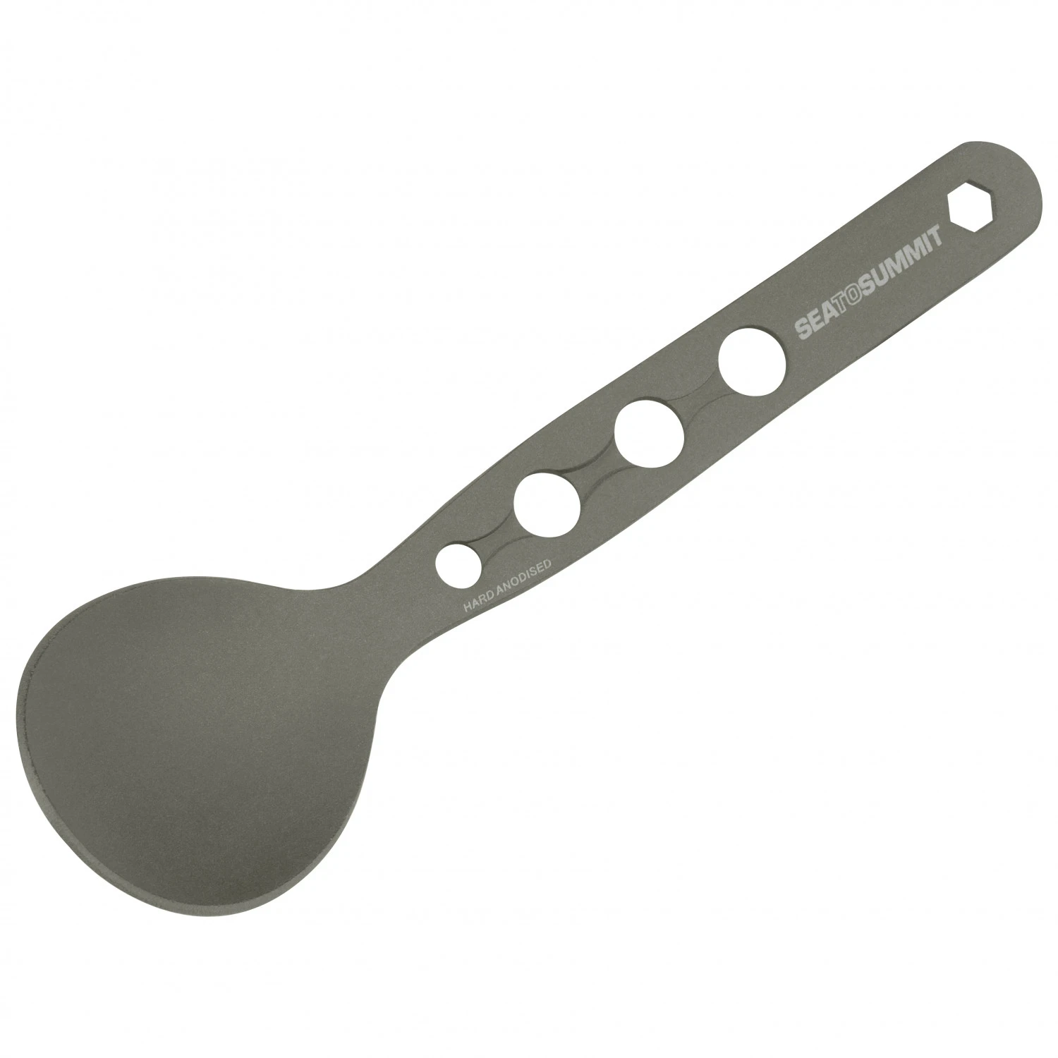 Stabil und mit cleverem Detail – das Alpha Set von Sea to Summit. Auf den ersten Blick erhält man hier ein Besteckset bestehend aus Gabel, Messer und Löffel. Bei genauerem Hinsehen fällt auf, dass an den Enden des Sets jeweils Sechskantschlüssel in drei verschiedenen Größen sind, mit denen man kleinere Reparaturen am Kocher etc. durchführen kann. Das Besteckset besteht aus stabilem, anodisierten Aluminium und ist damit besonders langlebig! Hinweis: das Alphaset ist nicht spülmaschinengeeignet!