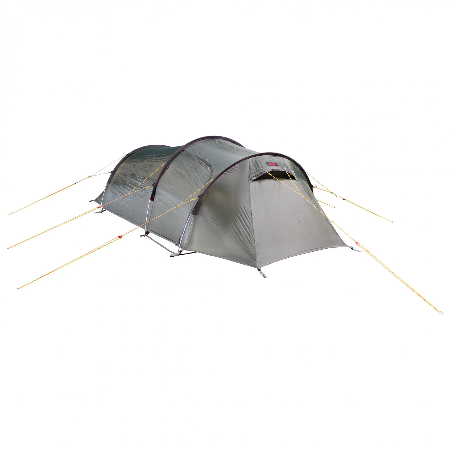 Im Innenzelt befindet sich eine Tasche, mit der Du beim Verstauen der Ausrüstung Ordnung schaffen kann. An den Befestigungsschlaufen im Innenzelt sind zusätzlich Dinge, wie beispielsweise eine Lampe, zu befestigen. Der Ausgang des Zeltes hat außerdem eine Tür aus Moskitomesh. So ist für ausreichend Belüftung im Zelt gesorgt, ohne dass lästige Stechmücken hindurchkommen. Reflektierende Schnüre sind praktisch bei Dunkelheit und – hält man sich draußen in der Nähe des Zeltes auf – man stolpert nicht versehentlich über die gespannten Schnüre! Zum Transport oder Aufbewahren kann das Kjevik 3 platzsparend im mitgelieferten Packsack verstaut werden.
