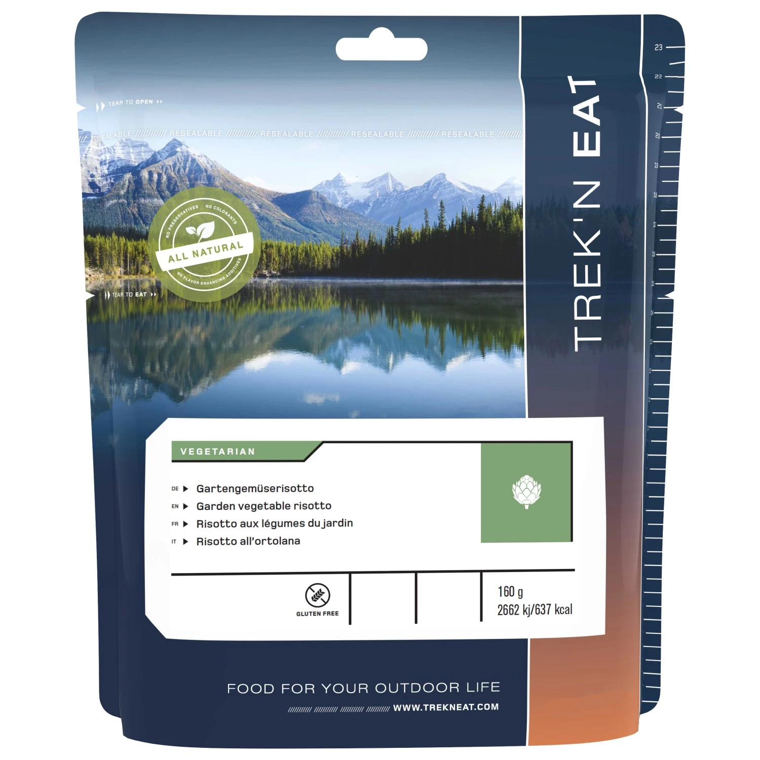 Wird man unterwegs hungrig, dann ist das Garden Vegetables with Risotto von Trek’n Eat eine gute Wahl! Die Trekkingmahlzeit wird mit 380 ml heißem Wasser zubereitet. Im Handumdrehen ist das Essen fertig! Guten Appetit!